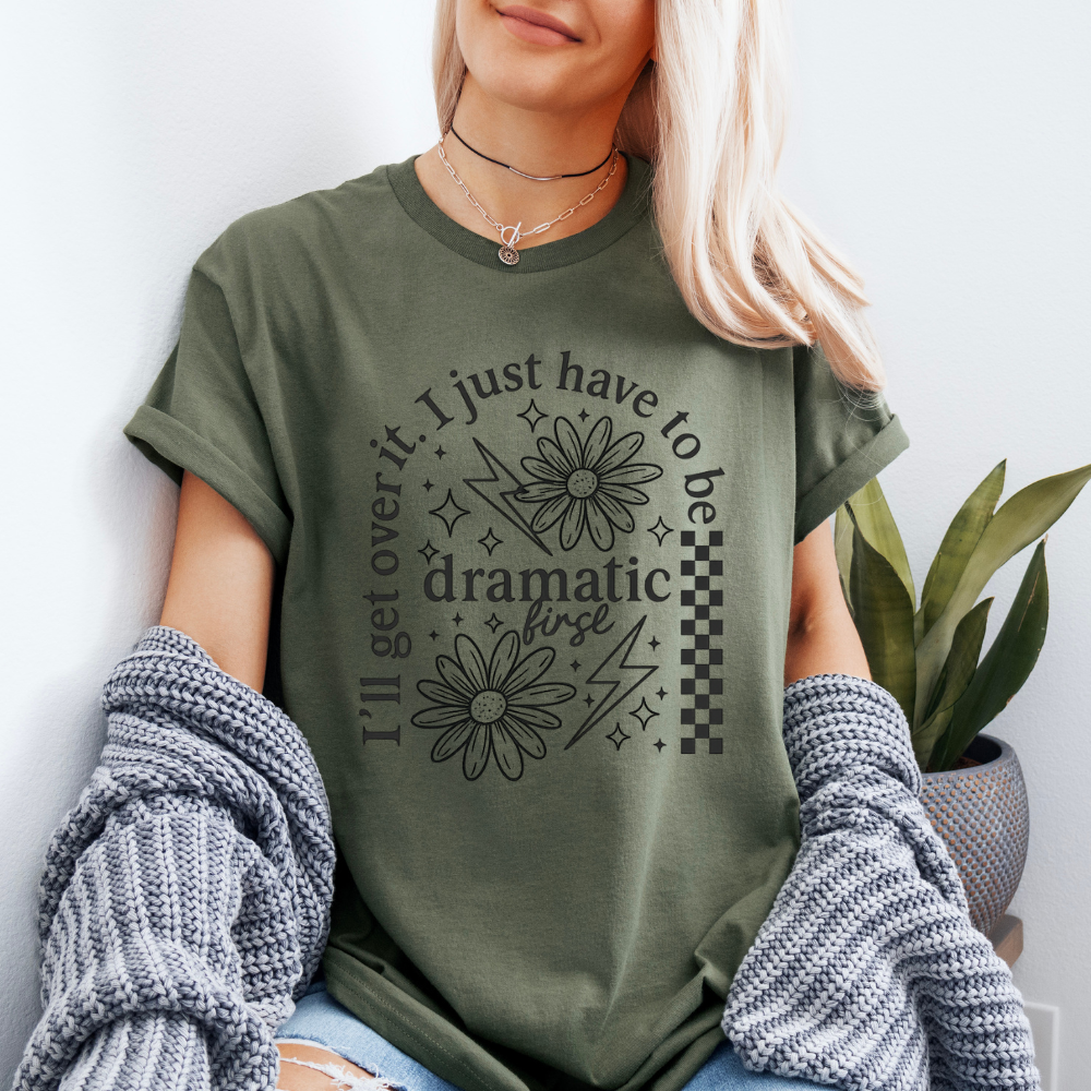“I’ll get over it… I just have to be dramatic first.” 💁♀️ Because sometimes the only way to process life’s little hiccups is with a touch of flair. This tee mixes playful florals, lightning bolts, and checkered vibes for the perfect blend of soft and sassy.