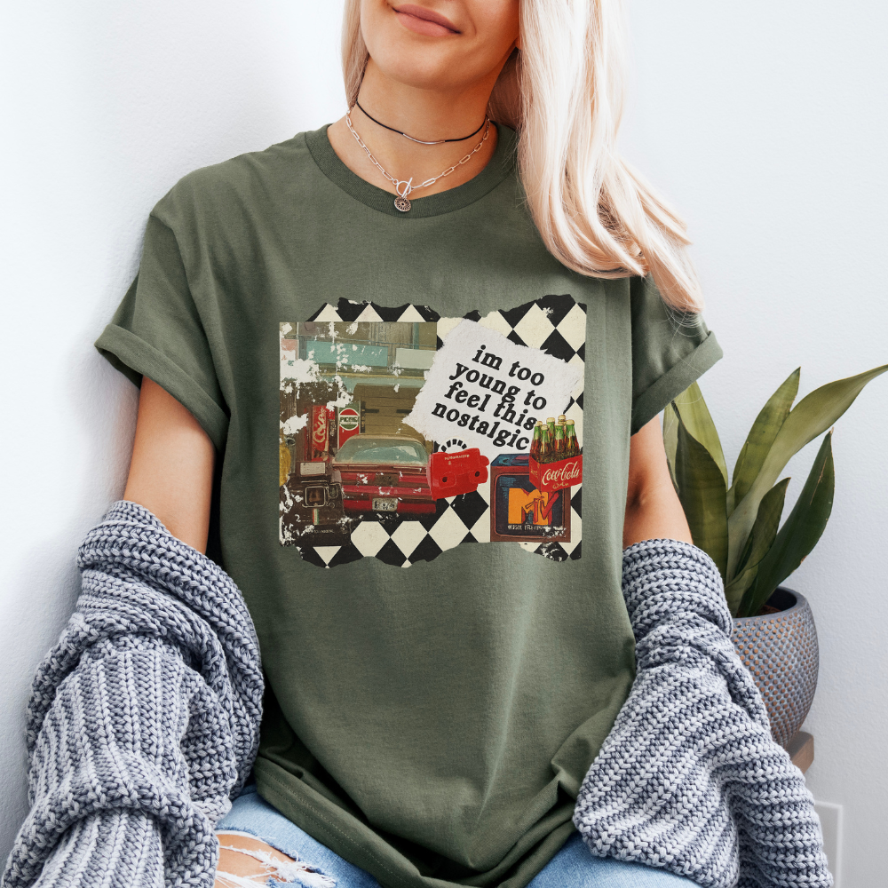 Too young to feel this nostalgic… but here we are. This retro-inspired tee is dripping with throwback vibes—classic cars, vintage sodas, old-school MTV, and all the feels of a decade you swear you didn’t even live through.