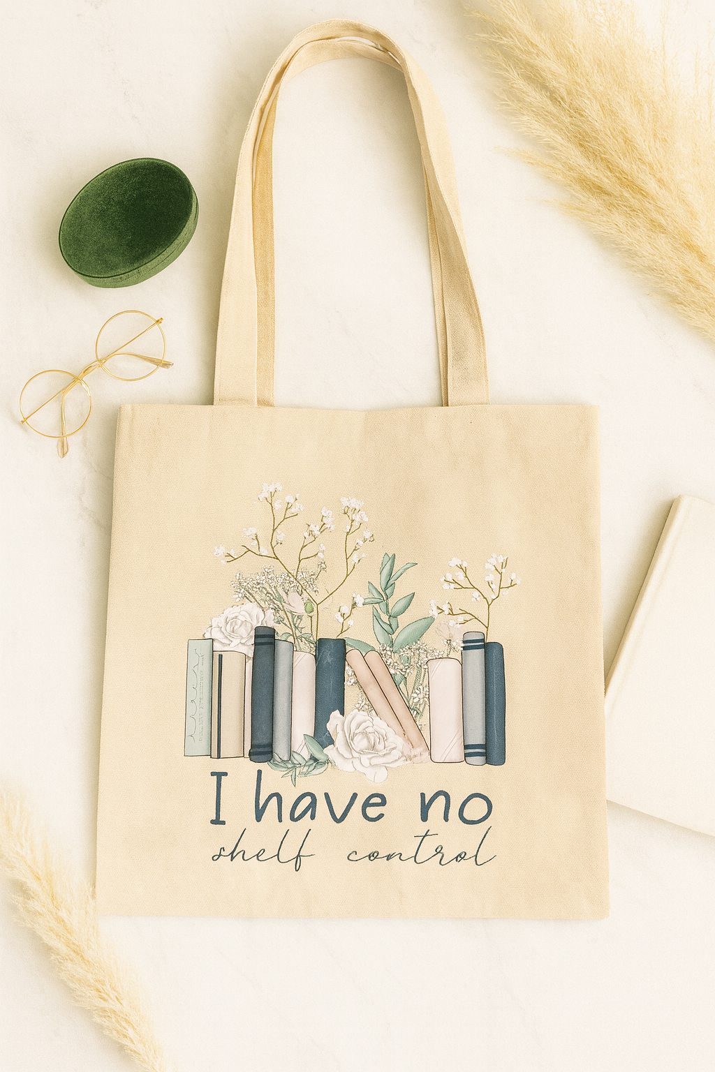 📚✨ For the readers who can’t resist “just one more book.” This charming tote features a dreamy stack of pastel-colored books surrounded by delicate flowers and greenery, with the playful phrase “I have no shelf control.” Perfect for library trips, bookstore hauls, or carrying your current reads, it’s the ultimate accessory for every book lover who knows that too many books is never enough. 🌸💛